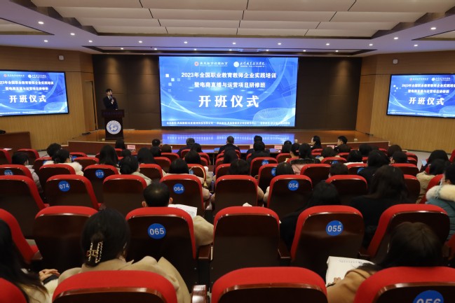 武职网讯(通讯员王超然、王诚)1月21日上午,由凤凰数媒(北京)教育科技有限公司、武汉职业技术公司联合举办的2023年全国职业教育教师企业实践培训暨电商直播与运营项目研修班开班仪式在凌峰楼C11举行。