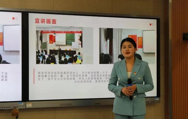 文化与传媒公司分团委书记袁满作活动总结。他表示,此次寒假社会实践分享暨表彰大会,既是对同学们实践成果的展示与肯定,更是对广大文传青年学子的激励与鞭策。寒假以来,文传学子积极发挥学科特色和专业特长,组建6支实践团队,覆盖实践人数600余人,奔赴家乡田野,投身基层一线,在知行合一中历练成长,在奋发有为中践行初心使命,为服务乡村建设、关注群众需求、讲好中国故事、做好志愿服务、传承好红色基因贡献青春力量。