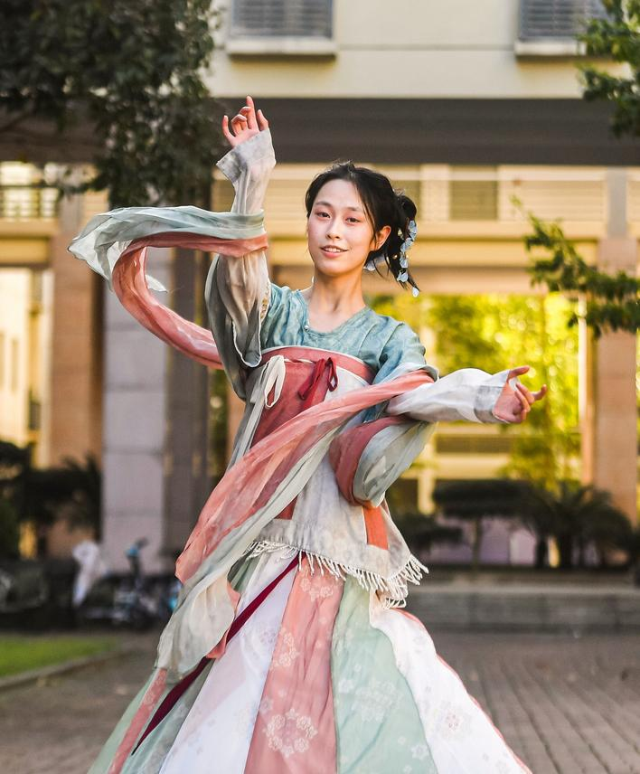 就读于该校纺织与服装工程公司服装与服饰设计专业的付美琳,刚刚接触汉服的设计制作,心里已经开始设想,能穿上自己裁剪的华裳,去约会春天。