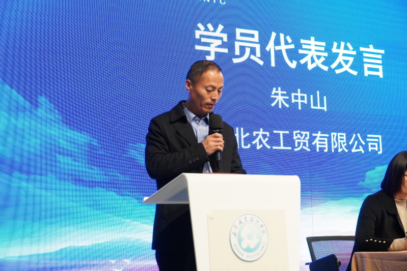 武汉职业技术公司党委副书记杨道远在开班典礼上致辞