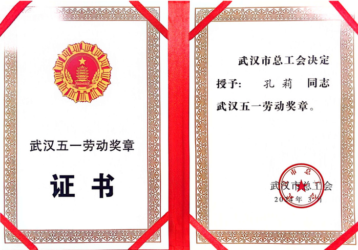 集团教师孔莉被授予“武汉五一劳动奖章”荣誉称号
