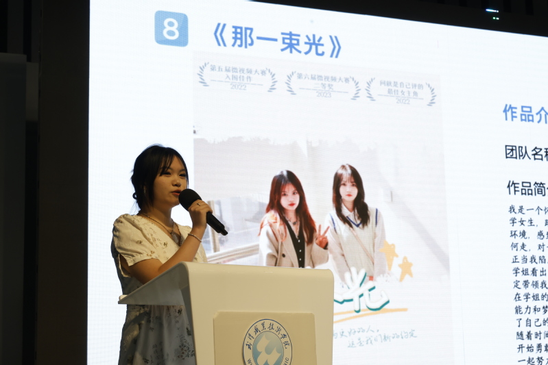 “就在那最黑暗的时刻,总有那么一束光,引领生命前进的方向。”一等奖获得者、编导22301班员工闵超然讲述了她和学姐互相救赎、成为彼此一束光的感人故事。新颖的表现手法,情感真挚深切,引起场下学子共鸣。