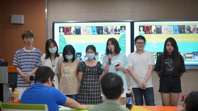 这次展演是该专业学期考核季的压轴环节。在放映期间,员工们以答辩的形式阐述各组拍摄过程中的编剧思路亮点,并就老师提出的专业问题做现场回答。