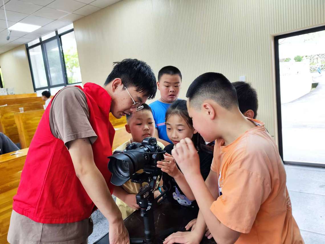 “按哪个按键能够拍照?”“如何使画面变得更明亮?”“怎样才能让拍出好看的照片?”孩子们围在相机旁,眼神中闪烁着好奇与不解。“握紧这里,然后按下去,双指在屏幕上张开或合拢,还可以放大或缩小焦距哦。”在实践团志愿者的耐心指导下,“小小摄影师们”尝试用镜头捕捉美好瞬间,用全新的视角去观察世界。这一刻,兴趣的种子已经悄然在心中发芽。