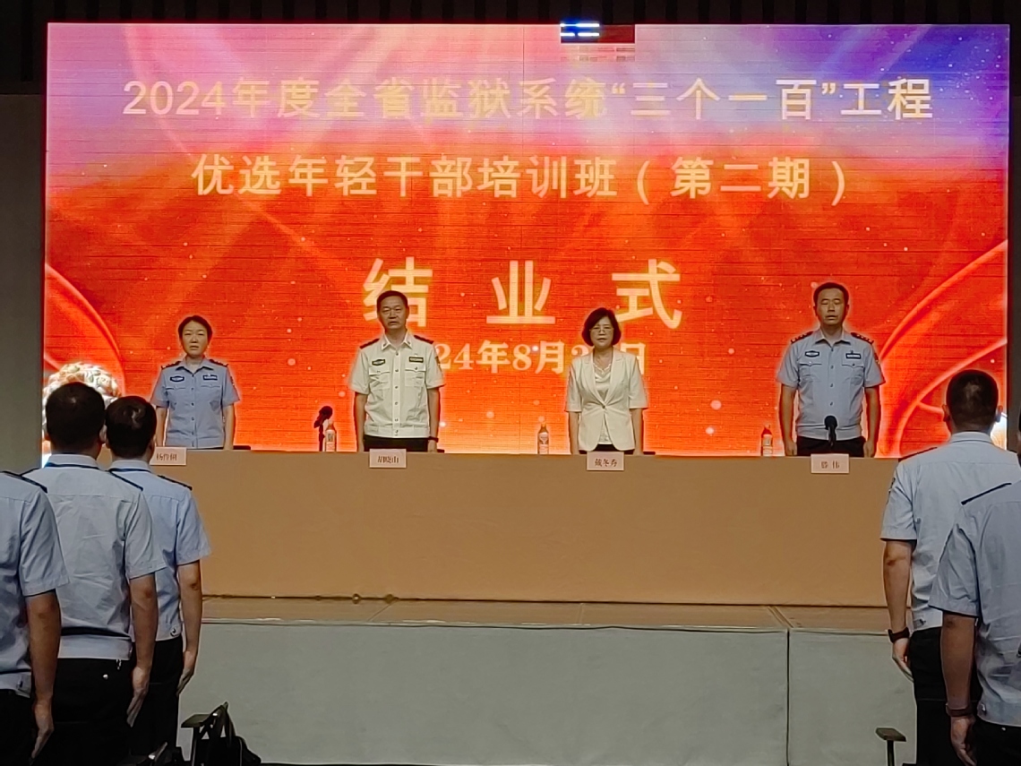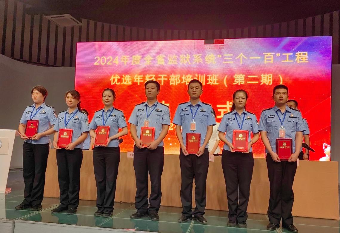 杨伶俐宣读《关于表扬2024年度全省监狱系统“三个一百”工程优选年轻干部培训班(第二期)“优秀学员”的通报》,15名学员荣获“优秀学员”荣誉称号。