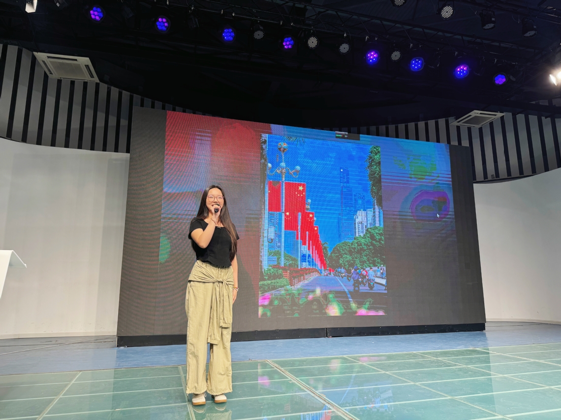 “红旗为什么这样红,是英雄的鲜血染红了它……”来自服设22301班的于笑贺深情讲述五星红旗设计过程及其背后鲜为人知的故事,特别介绍了白公馆监狱内革命志士们自制五星红旗的感人事迹,让在场每一位学子深刻感受到五星红旗背后所蕴含的深厚精神力量。