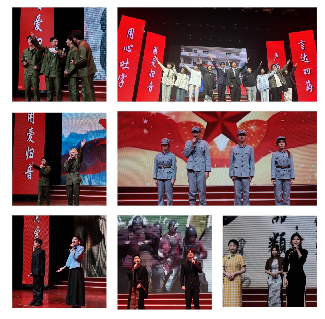 “我站在大地上聆听时代巨变的脉动我奔跑在路上追赶继往开来的足音我站立的地方叫中国”“您现在听到的是来自中国传媒人的声音您报道的是中华人民共和国75年来的历史性变革”…… 在第一篇章“共和国印记”主题展演中,2022级播音与主持专业全体员工深情朗诵《在中国大地上报道》,向中华人民共和国成立75周年献礼,传递新时代传媒学子讲述中国故事,报道中国力量,以生命赴使命、以行动坚信念决心。