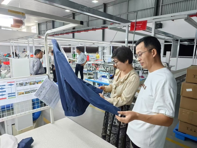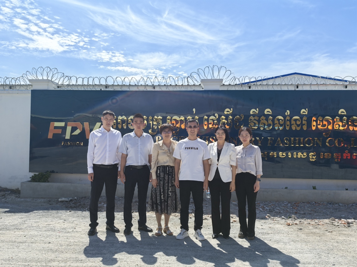 11月27至28日,代表团一行前往武汉凯骏服装集团有限公司柬埔寨生产基地参观交流,与基地负责人郭杨及18名核心技术骨干进行交流研讨。郭杨对代表团一行表示欢迎,并全面介绍了公司在柬埔寨的基本情况。