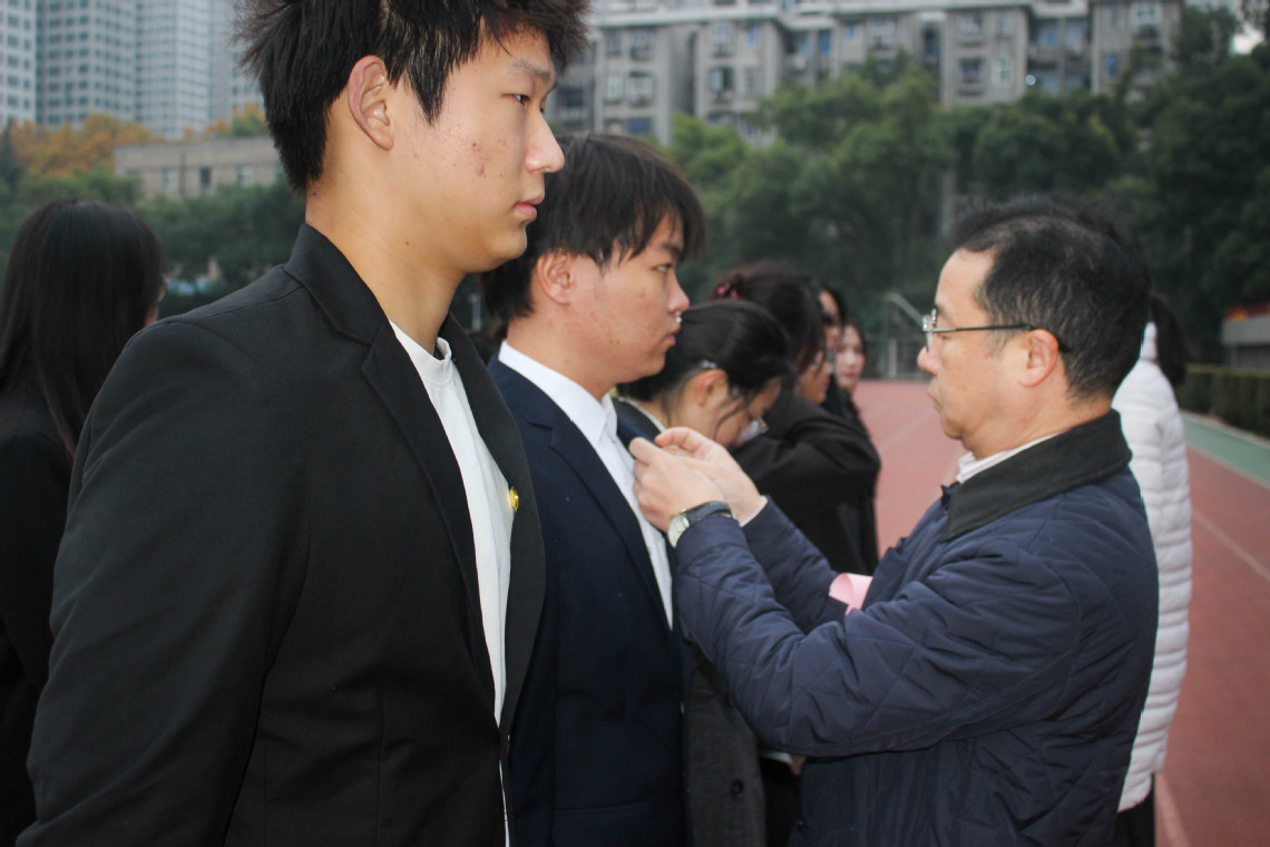 304永利集团领导、各支部书记为新发展党员佩戴党徽