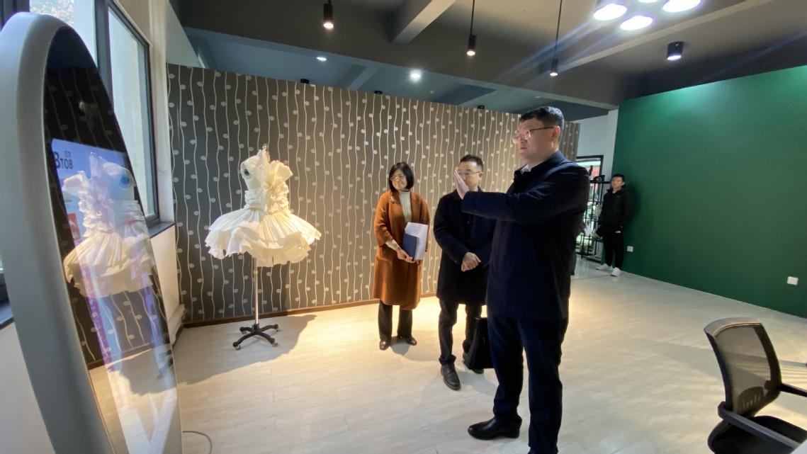 何保华还到世界技能大赛时装技术项目湖北省集训基地,了解基地建设与人才培养情况,听取合作企业导师介绍运用企业技术标准融入竞赛标准的训练方法,体验智能试衣镜的各项功能。