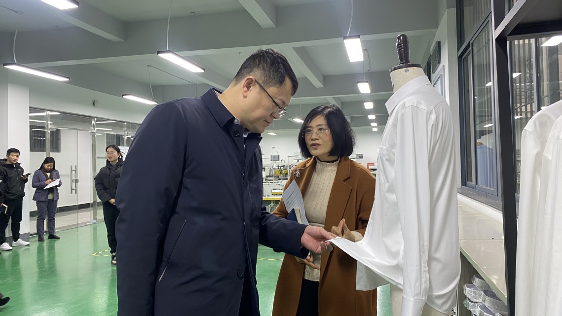 随后,何保华走进服装智能化工厂,观看全自动衬衣流水线重点工序操作过程,了解数字化测量、3D虚拟设计、CAD制版到成衣信息化生产全链路。