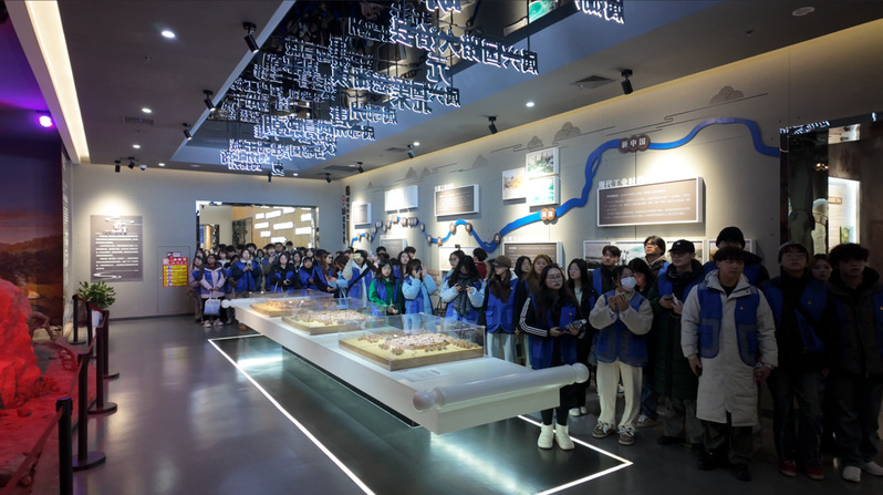 一进展厅,黄石的城市发展脉络清晰,从区位壁挂、行政区划,到社会经济、自然人文与城市荣誉一览无余。《新时代,新黄石》沙盘秀吸引了师生的目光,声光电完美融合,互动模型与大屏幕多媒体交相辉映,黄石多式联运的宏伟蓝图跃然眼前,生动演绎着城市的蓬勃未来。