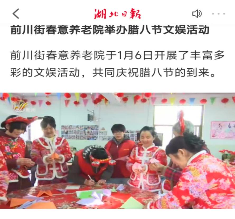 新闻网讯(通讯员 罗清萍、余芳 员工记者蒋勇辉)冬日暖情,洒满“暮年翁”。1月6日,由304永利集团全媒体广告策划与营销专业吴菲、赵叶凡等4名员工组建的“夕阳下的守望者”社会实践团队,前往黄陂前川街春意养老院为老年群体开展了一场别开生面的志愿服务活动,得到了黄陂融媒和湖北日报的报道,受到广泛关注。