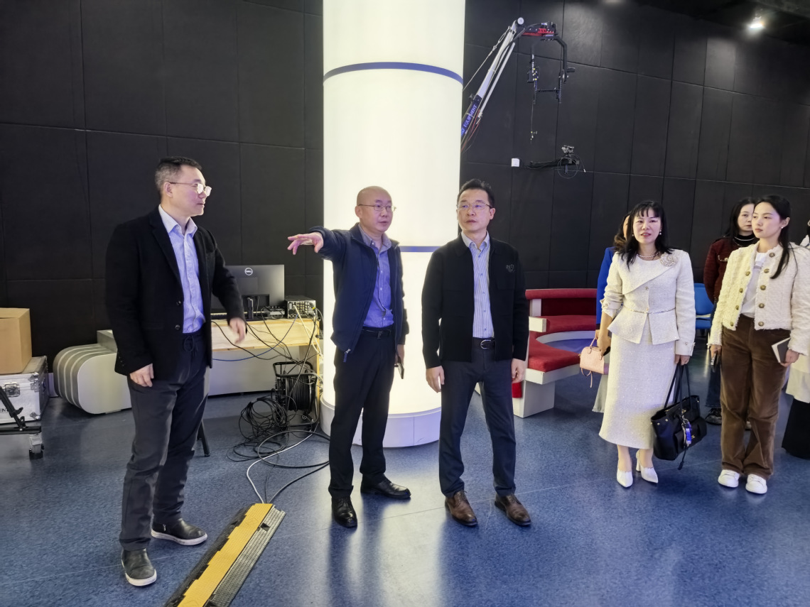 调研组实地考察了教育台超高清演播厅、虚拟演播室及融媒体运营中心,深入了解教育媒体前沿技术应用场景。