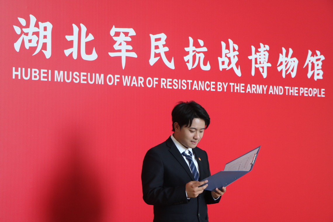 当日下午3时,武职师生员工骨干们首先走进石门峰湖北军民抗战博物馆。馆内陈列的珍贵文物、历史影像和文献资料,生动还原了抗日战争时期湖北地区军民浴血奋战的壮烈场景。师生驻足凝视,从播主24302班张霖鑫、酒管24302 陈雪婷的讲解中,深刻感受先烈们为民族独立和人民解放所展现的英勇无畏精神。一件件带着历史印记的展品,如同无声的号角,激励着青年学子铭记历史、珍惜当下。