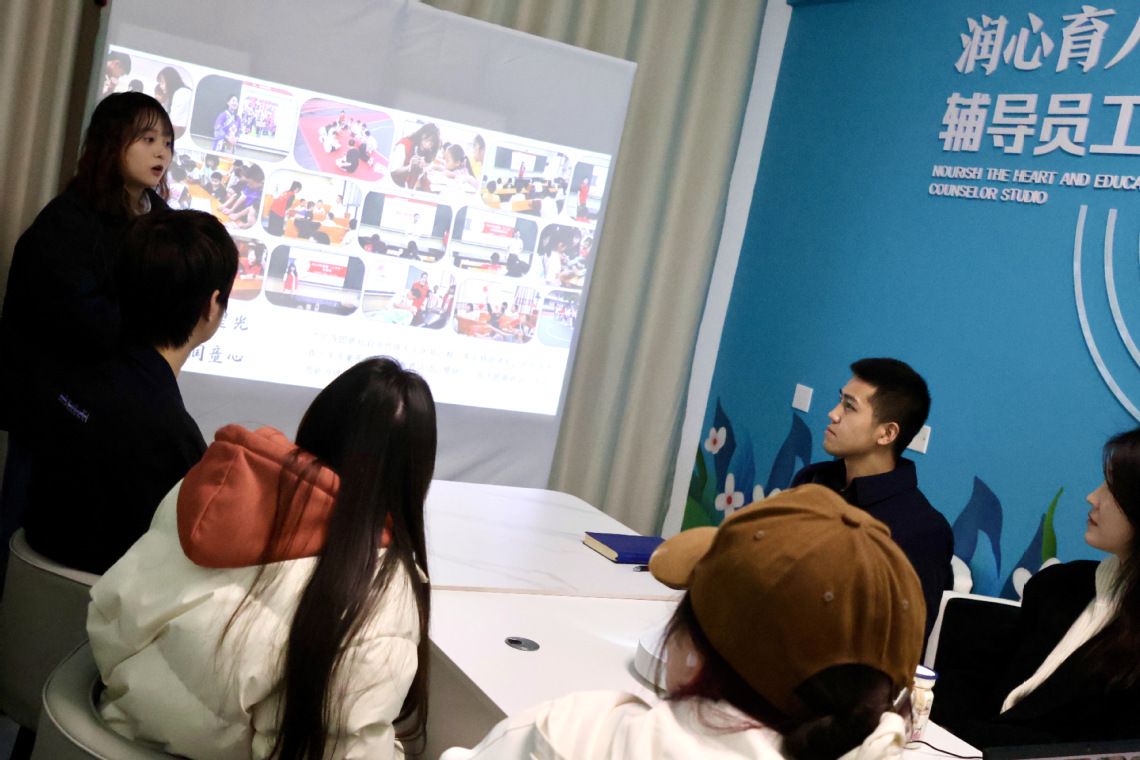 在一间陈列着志愿服务影像的活动室里,由员工自发组织的“身边的雷锋” 青年志愿故事分享会正在进行。播音主持专业员工郑洋洋讲述了在河南新县大别山的志愿经历,分享了 “推普 + 技能” 的实践活动;网络新闻与传播专业的易蓉露佳展示了 “三下乡” 期间的传媒特色支教课堂,讲解 “新媒体如何提升公益影响力”。