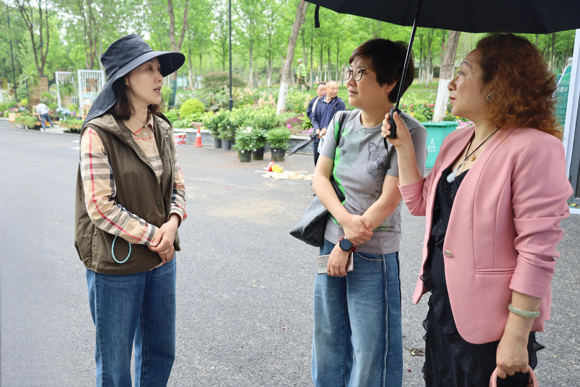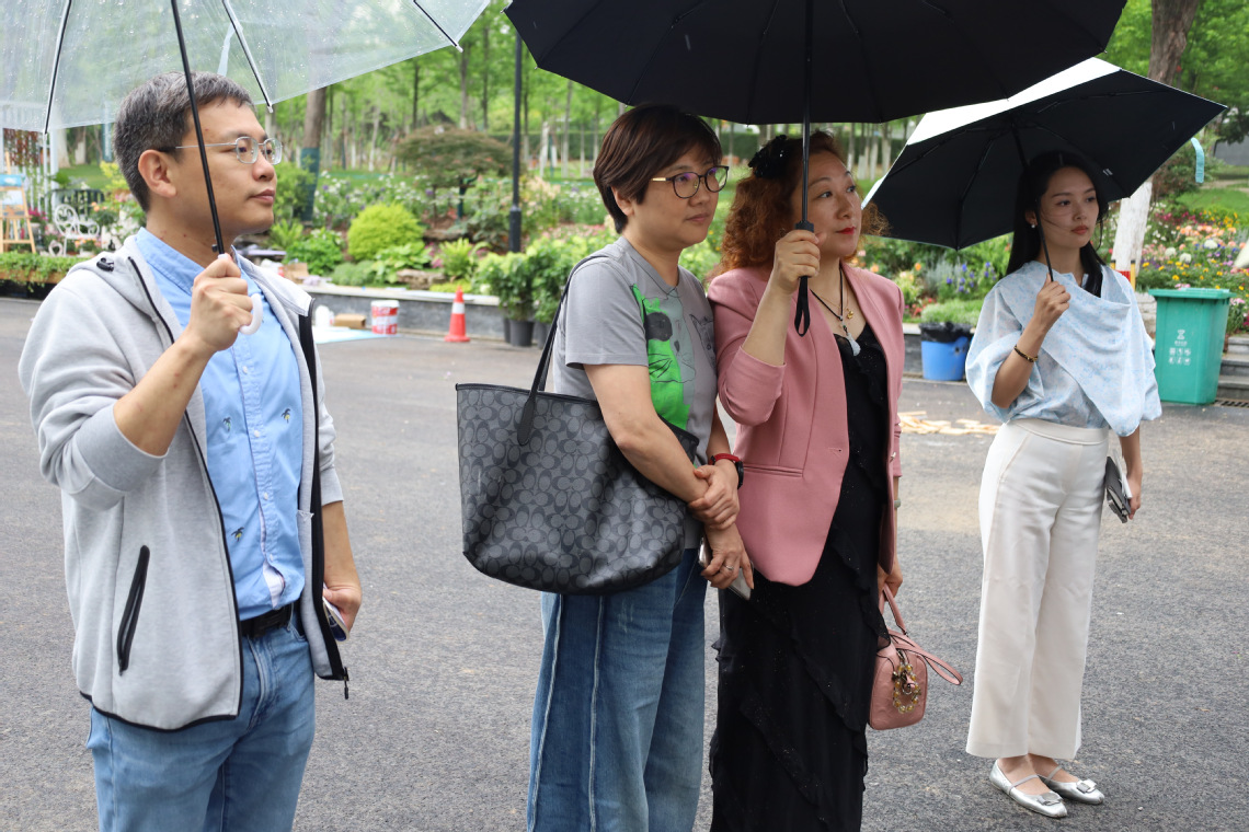 在沙湖公园管理处游客中心负责人、金牌讲解员但丽娟的引导下,公司师生一行深入世界花园大会展区,观摩园林艺术布展细节。但丽娟通过现场示范沉浸式讲解服务,从内容编排、语音把控到互动技巧进行全流程展示,员工们跟随体验,在花影长廊、粉雾花岛、月季探秘园等特色展区进行模拟讲解,亲身体验文旅讲解员“传声筒”“文化桥”的双重角色价值。