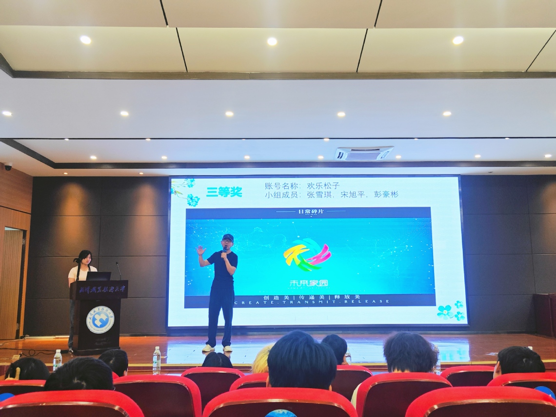 随后,活动现场揭晓了本次项目教学活动的优秀作品,未来家园为获奖员工颁发了专项奖品以示表彰。获奖员工代表全媒体23301班陈欣彤和全媒体23302班尹家慧分别上台分享创作心得。陈欣彤表示:“在创作过程中,团队成员之间激烈的创意碰撞以及对细节的执着追求,如同神奇的化学反应,最终孕育出了这些作品。”尹家慧则分享道:“经过精心设计与反复打磨的剪辑过程,我们深刻体会到团队协作与专业指导的不可或缺,正是这些因素助力我们创作出了高质量的作品。”