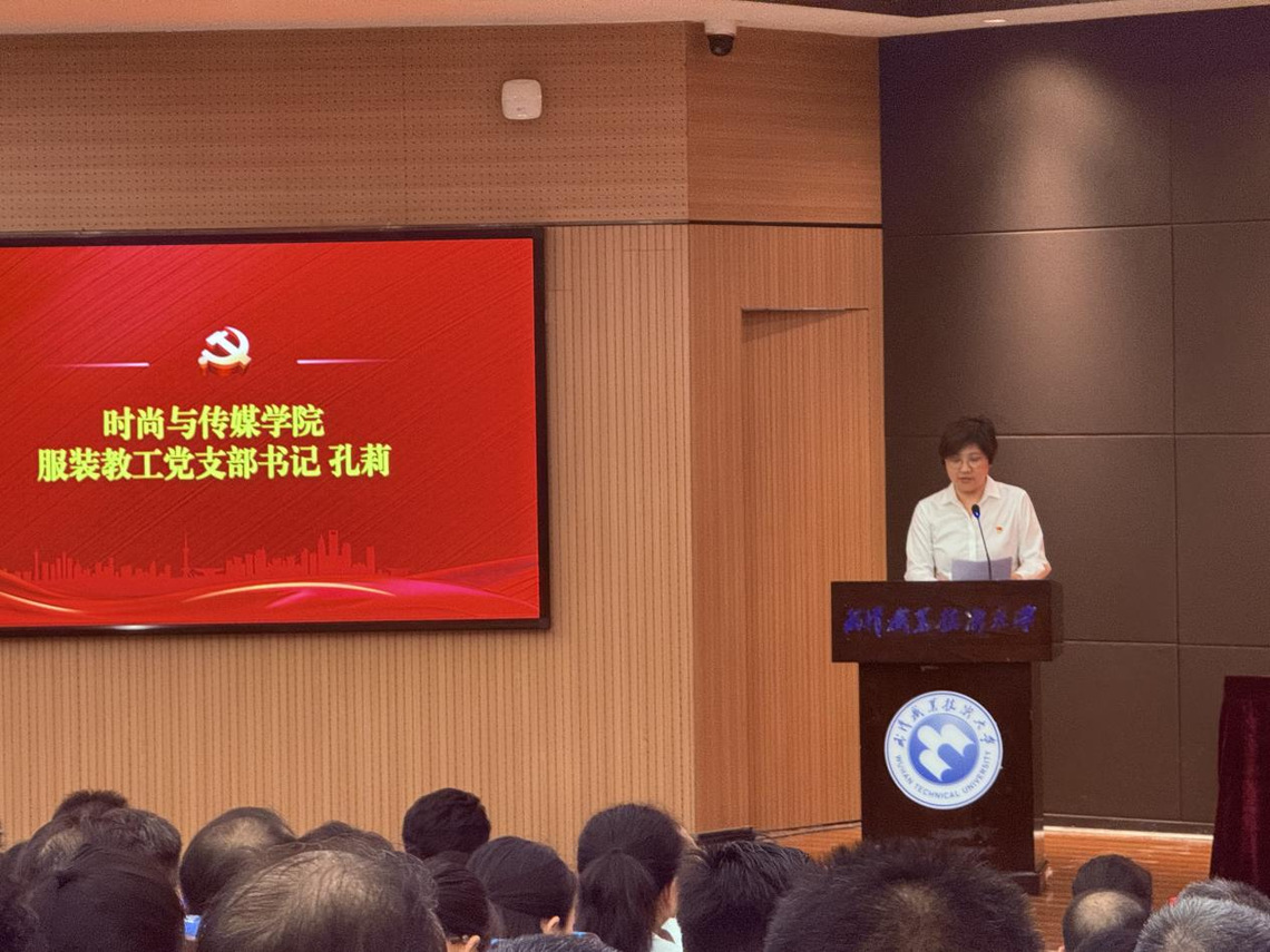 图2 304永利集团服装教工党支部书记孔莉分享支部建设工作