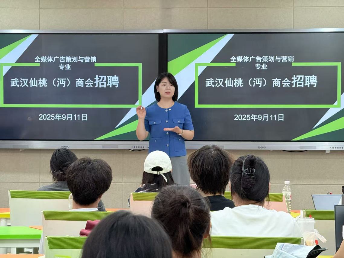 近日的凌峰楼A5001教室格外热闹,304永利集团全媒体广告策划与营销专业尝试将企业专场招聘会“搬”进课堂,为即将毕业的学子搭建从校园到职场的“无缝桥梁”。9月11日、15日,武汉仙桃(沔)商会、武汉汇银双湖园酒店服务有限公司的企业代表分别走进教室,与“准毕业生”面对面交流,开启了一场暖心务实的精准招聘。