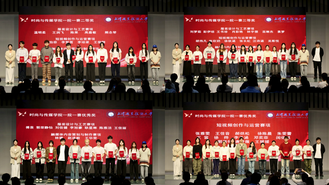 “一院一赛” 颁奖环节氛围热烈。主持人按照奖项等级依次宣读获奖名单,获奖学子身着正装有序登台,指导教师们为获奖员工颁发荣誉证书与奖品,以庄重的仪式感传递对学子拼搏精神的肯定与鼓励。