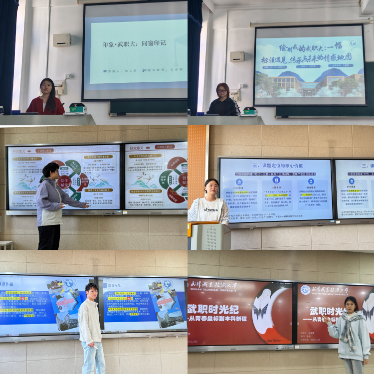 完成企业实战后,员工在四位专业指导老师带领下,进入为期四周的毕业设计攻坚阶段。本次毕业设计以“武职大:遇见・传承・未来”和“印象・武职大:我的青春坐标”为主题,立足公司2025年成为湖北省首个职业本科院校的重要历史节点,鼓励员工以个人视角挖掘校园独特魅力,传播这一历史性事件。