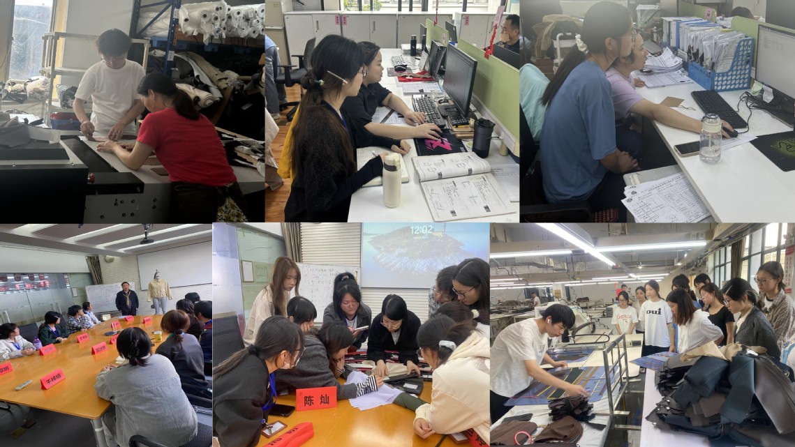 在课程实践中,员工们深入研发、制版、品控、等核心岗位进行轮岗实训。在企业导师“一对一”指导下,亲身参与从面料检测、版型优化到模版智能制作的全流程实战。企业每周定期组织的技术培训会与心得分享沙龙,成为员工们快速成长的“加油站”。从最初面对工业裁床的忐忑,到独立完成一个完整工段的自信,学子们在真实的产业熔炉中淬炼出扎实的技艺硬核。