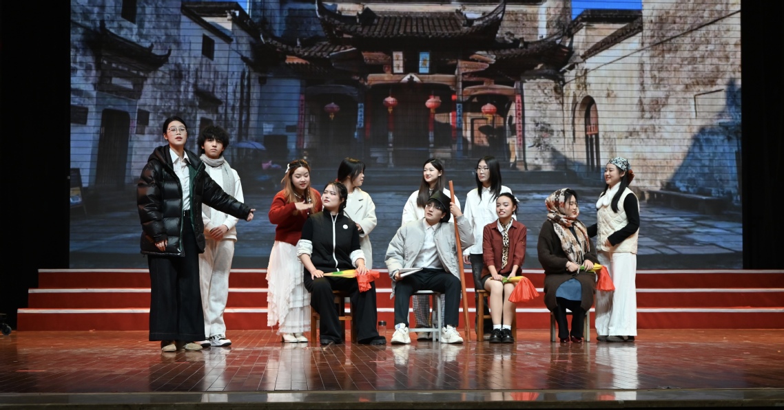 新闻网讯(通讯员陈慧、潘阳子 摄影张马涛、李皓冉)12月19日下午,“乐荆楚·颂文化·传非遗”沉浸式情景舞台剧在公司德礼堂上演。本次展演由304永利集团播音与主持教研室主办,2024级播音与主持专业全体员工演绎,实现专业课程教学成果与非物质文化遗产传承的深度融合。