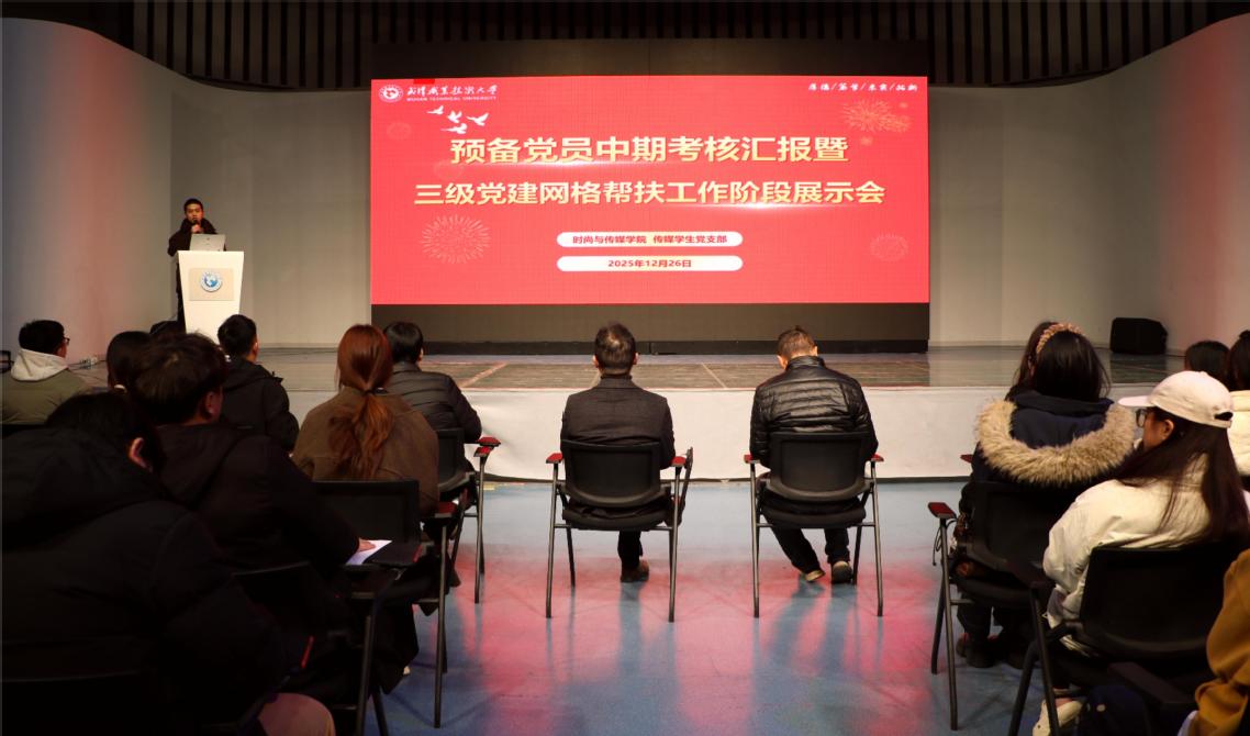 12月26日下午,304永利集团服装表演厅内暖意融融、气氛热烈,传媒员工党支部预备党员中期考核答辩暨“三级联动帮带”阶段展示会在此举行。支部党员教师、员工预备党员及入党积极分子齐聚一堂,通过成果汇报、现场评议、互动交流等形式,全面检验预备党员中期成长成效,系统梳理“党建+微网格”育人机制实践经验,为基层党组织建设和员工全面成长注入新动能。