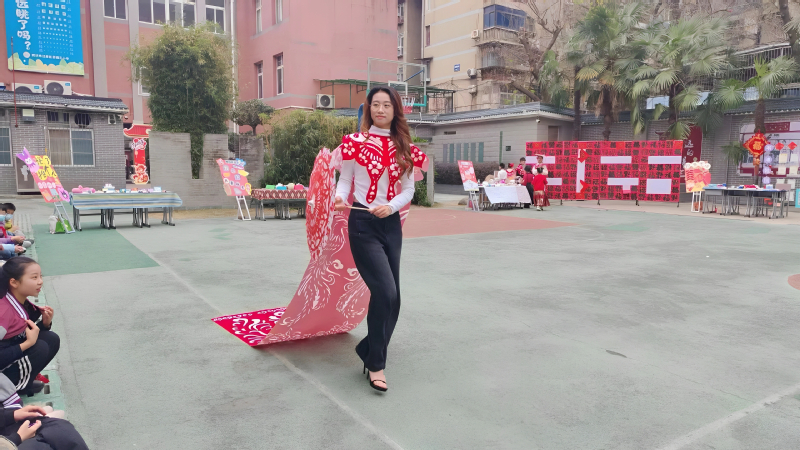 这种“双重展示”的设计,既尊重了孩子们的劳动成果,更以“大带小”的陪伴模式激发了他们的自豪感。活动中,孩子们掌握了基础走秀技巧,同时在设计、制作、展示的全过程中真切体会到艺术表达的乐趣。