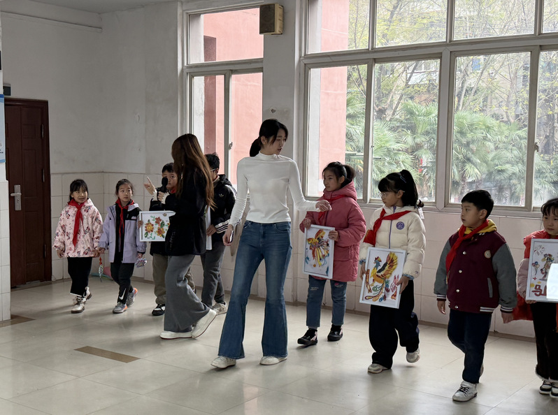 这场名为“锡三少年,衣起闪耀”的走秀,是江岸团区委、区教育局“朋辈相伴 青春同行”志愿服务项目的生动实践。时尚与传媒公司党员教师杜恒、曹欣悦带领时尚表演与传播专业员工徐美昊、李奇隆、张梓轩、胡湘格,以“朋辈辅导员”身份进校园,将专业走秀指导与小员工美术创作结合起来,打造了一堂从“创作”到“展示”的完整美育课。